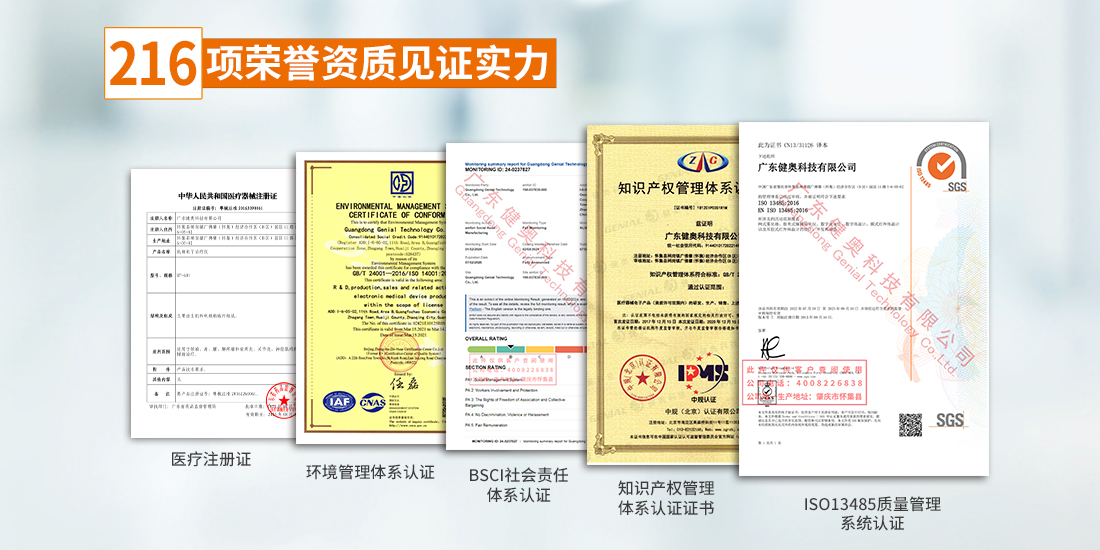 不斷研發(fā)創(chuàng)新,企業(yè)已經(jīng)獲得216項榮譽資質(zhì),并且通過了ISO 13485 、ISO 45001、 ISO 14001、GB/T 29490知識產(chǎn)權(quán)管理體系認(rèn)證、BSCI社會責(zé)任體系認(rèn)證